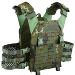 The Shadow Elite ‘FPC’ Falcon Plate Carrier is the latest evolution of plate carriers from Shadow Elite. Designed to be a lightweight and versatile low-profile armour carrier, offering enhanced mobility without compromising protection. The FPC has been developed to hold medium and large SAPI and ESAPI stand alone plates and the most common 10” x 12“ I.C.W. plates available. Plate pockets have been backed with 3D mesh for added ballistic performance, comfort and dispersal of body heat. The Falcon Plate Carrier comes standard with ladder style cummerbunds that attach to the FPCs front via 2 YKK Clips. This allows rapid access when getting in and out of. The FPCs shoulders can be worn in 3 different configurations as a slick low profile with the addition of velcro padded shoulders and wrap around sleeve for hydration and comms channeling. The FPC comes as standard with a removable MOLLE front flap held in place by 2 vertical SQM clips and strong velcro which allows the panel to be removed and replaced with a wide variety of preconfigured weapon-specific pouch panels and Shadow Elite new Falcon & Apache Chest Rigs.