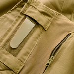 * Simple knee pad height adjuster located in front thigh pocket. * Designed for use with removable Knee Pads Built-in flap covers kneecap opening when not using knee pads.